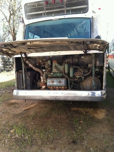 While driving in middle California between Fresno and Bakersfield on a two lane road there was this bus sitting on the side of the road.I stopped and looked it over and got in touch with the owner who sold it to me. It was towed to my yard in Perris. Turns out it had engine problems of which I fixed and it ran great for several years thereafter. This bus was unusual because it had hi back seats.